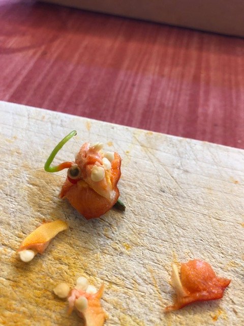 Die Numex Twilight ist auch abgeerntet und etliche Pflanzen auf dem Kompost. Bei "entkernen" einer Bishops Crown hatte ich einen Trieb in der Beere - neulich wurde mal darüber diskutiert - ich dachte ich stelle mal ein Bild davon hier rein.