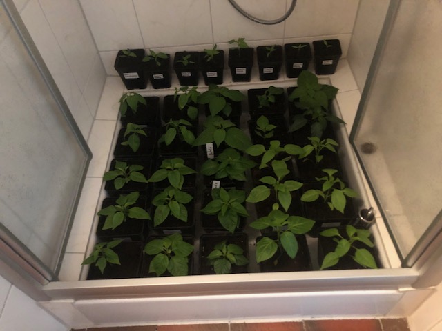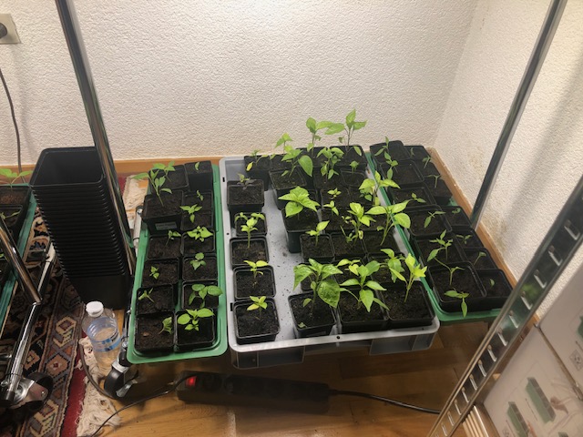 Kleines Update. Aktueller Stand: Weitere Pflänzchen wurden aus den Anzuchtboxen vertrieben in kleine Töpfe und die Dusche und die Euroboxen mussten die aufnehmen. Ich habe entschlossen, mit den Tomaten zu warten bis kommenden Montag.