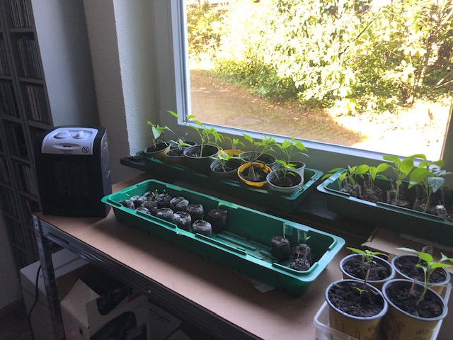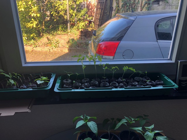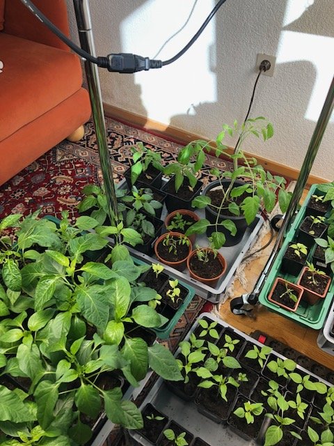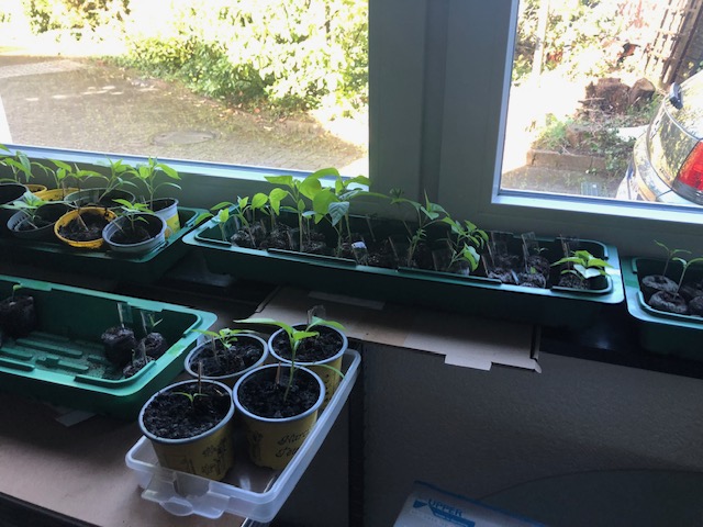Ja, die lange ersehnten Eisheiligen verabschieden sich, der Monat mit dem schönsten Grün der Pflanzen ist gerade. Meine Chilipflanzen wachsen nun auch erkennbar - das macht richtig Freude.Ich kenne das Gefühl, unsere Dusche ist mittlerweile auch geräumt. Aber ein Blick in den Garten ist Entschädigung genug.