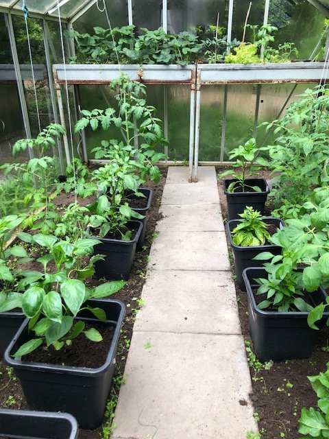 So - die Samstagsarbeit ist verrichtet - Bild 1 und 2 vorne die eben umgetopfte "Reserve" hinten die geschundene Outdoor. Ich hoffe, mal eine Anordnung gefunden zu haben, die so bleiben kann. Im neuen GWH nur bis auf eine Chili in der Erde etliche Tomaten auch alle in der Erde. Einige Chilis ins Freiland gesetzt- als Experiment wie die da wachsen. Die Lampen und Gestelle und die Anzuchttöpfe wandern morgen in Verpackungen. Jetzt brauchts mal einen Weile keinen Regen.