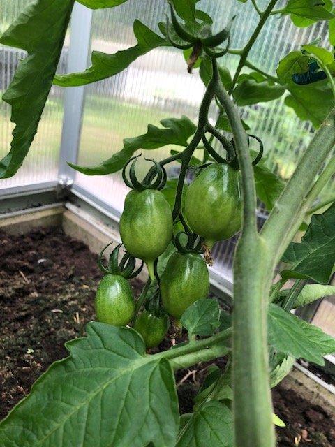 Im Vergleich die Früchte heute gegenüber den Bildern vom 22.05. Wer von den Damen und Herren mit Tomatenkenntnis wagt eine Typbestimmung ?