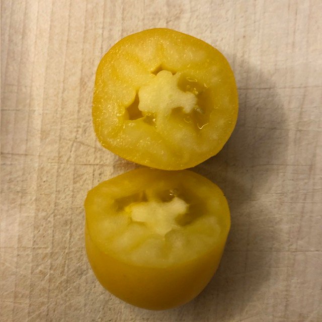 Die Pflanze wuchs im Glasgewächshaus bis an die Decke und aus dem Fenster heraus - dadurch dass ich generell zuwenig / zu spät Blätter abgeschnitten habe ist der Ertrag an Früchten pro Pflanze überschaubar - diese Sorte kommt auf jeden Fall auf die Liste für 2025 - Ertrag aller Chilis und Tomaten wird notiert - ich kann Ende der Saison eine Tabelle in den Thread stellen.