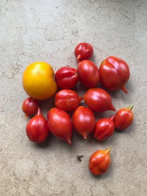 Und gestern habe ich die ersten Tomatenstöcke entsorgen muss - einer nur mit faulen (San Marzano) - an gleicher Stelle im letzten Jahr auch faule Tomaten - muss wohl irgendwas in der Erde stecken. Und zwei wuchernde aber zum grössten Teil abgeerntete Johannisbeertomaten.