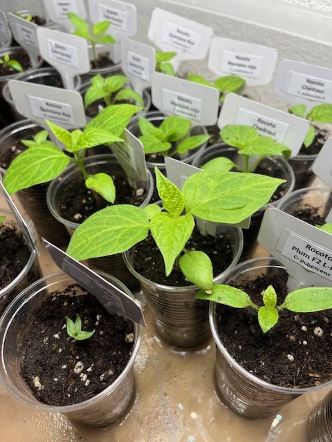 Derzeit 49 Pflanzen in Bechern, einige alte Samen von @Chilirudi wollen bisher nicht, ich gebe denen aber noch 30 Tage bis zum entsorgen - Aji Charapita, Rocoto Marlene und Rocoto Marlene wollen nicht so recht. Was noch garnicht zum keimen gegeben wurde sind Capsicum annuum Schärfe 0 - das hat noch Zeit.