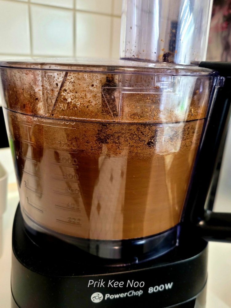 Original werden die Chilis in einem großen Ton-Mörser zerkleinert. Den haben wir zwar auch, aber bei der Menge dauert das zu lange und ist zu anstrengend, also ab in den Philips.