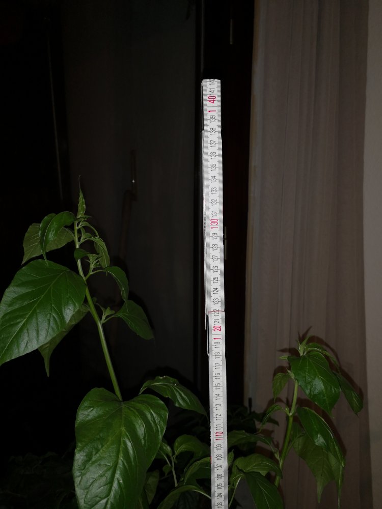 Handgroße Blätter und bei 1,30 m keine Seitentriebe geschweige eine Blüte. 😬 Oder ich mache echt was verkehrt.