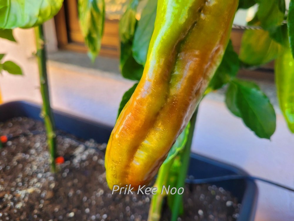 Die Möchtegern-Prik Kee Noo ist nun sage und schreibe 1,8m hoch. Die Beeren sind sehr hell und wellig. Keine Ahnung was da bei raus kommt. Hat einer eine Idee?
