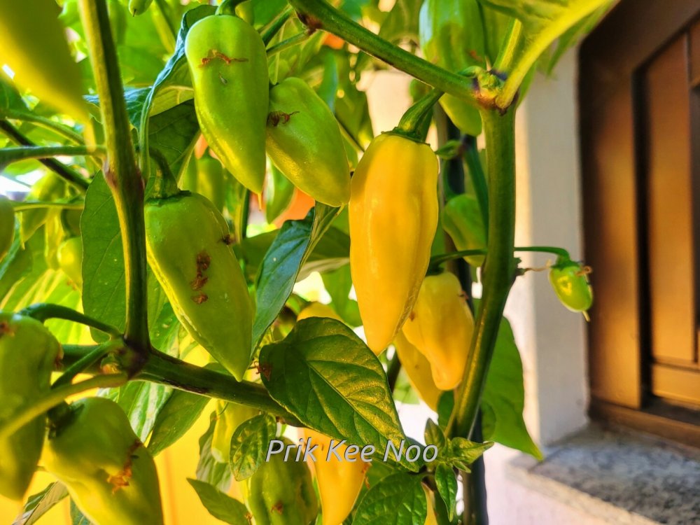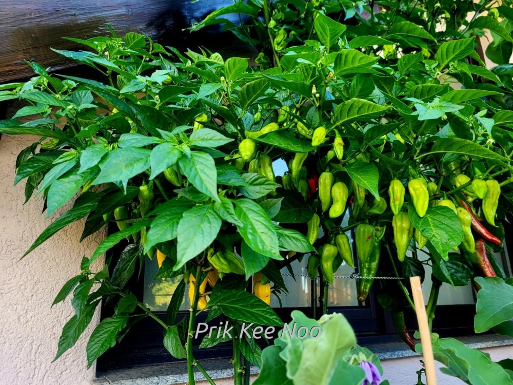 Reihenfolge wie immer, Habalokia White, Carolina Reaper, Morita, Lemon Drop, Prik Kee Noo (oder so), Sugar Rush Peach Striped, Krapao, Burgundy und die Thai Auberginen. Die kleine Prik Kee Noo ist am Abend immer etwas müde. Sieht man vielleicht in der Übersicht, aber am nächsten Morgen ist dann alles wieder, wie wenn nichts gewesen wäre. 😄