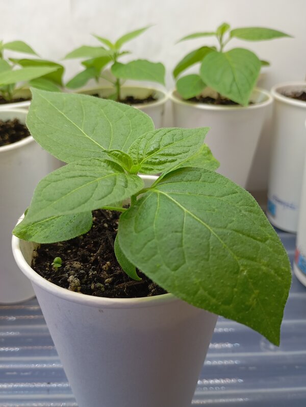 Die eine Pflanze der Rocoto Orange Giant bildet neuerdings vernünftige Blätter aus, Anfangs waren die ja verkrüppelt.