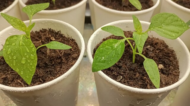 Die Asagi-Chili sind sehr starkwüchsig und haben die anderen Sorten im Wachstum fast überholt.