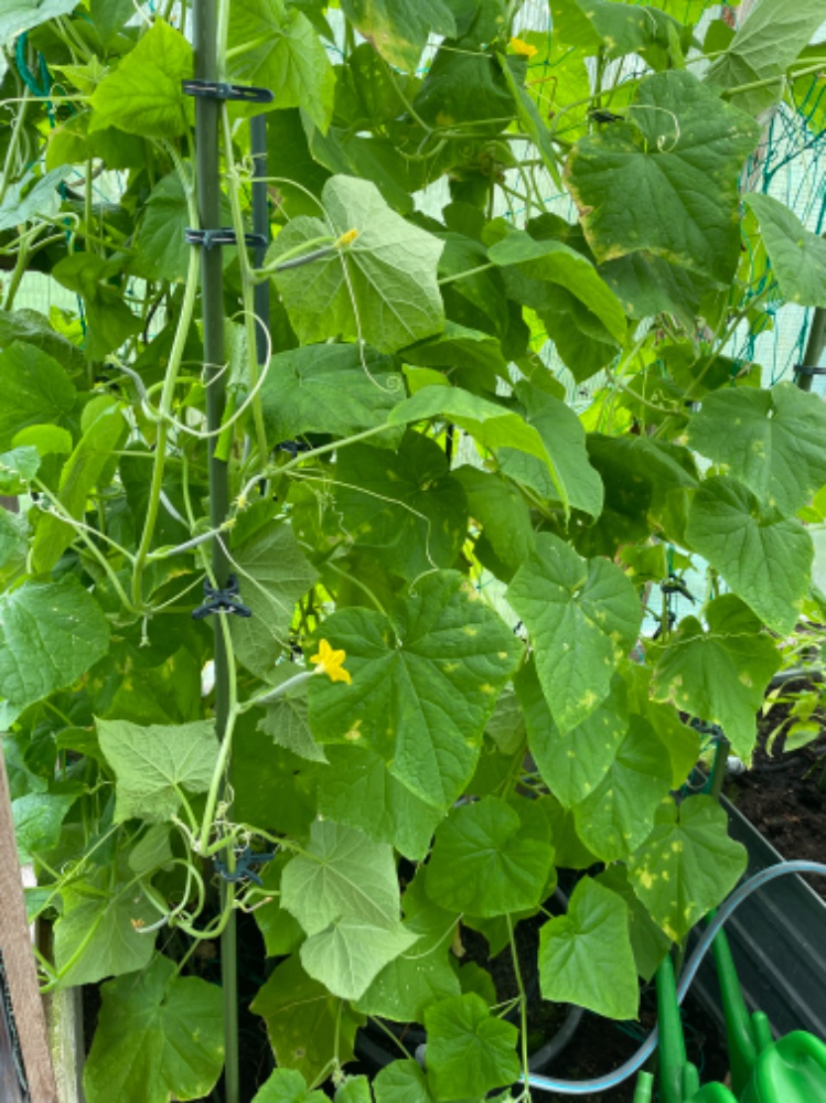 Sie sehen sehr gesund aus.Heute gab es wieder eine kleine Salatgurkenernte.