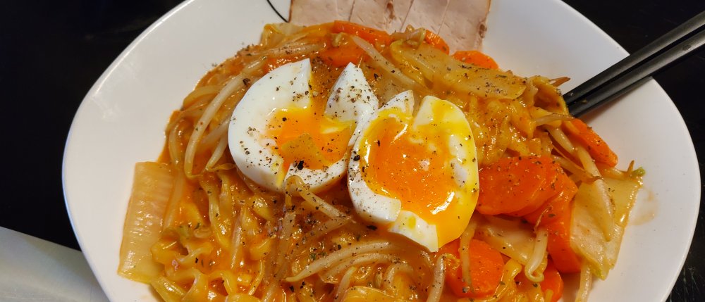 Im Asia Shop flott ein paar Nudelkissen auf Vorrat besorgt, etwas frischen Lauch, ein paar Möhrchen ,etwas Paprika kleingeschnibbelt und mit den Nudeln und leckerem Super Hot Pulver in etwas Bio Hühnerbrühe aufgekocht, fertig. ☺