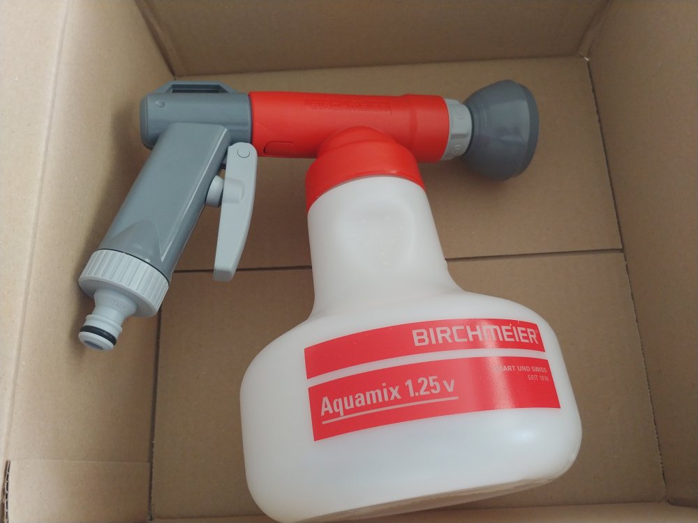 Ahh, ok.In den weißen Behälter kommt ne Düngerlösung und dann benutzt du das Teil als normale Schlauchbrause. Vorne ist ein Drehring, mit dem du die passende Düngerkonzentration einstellst und dann geht's los.