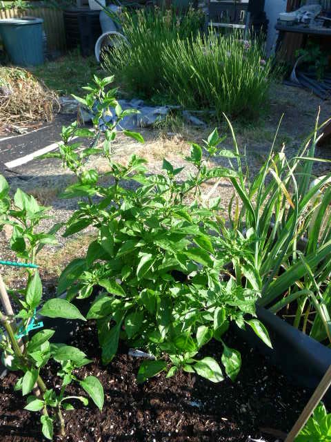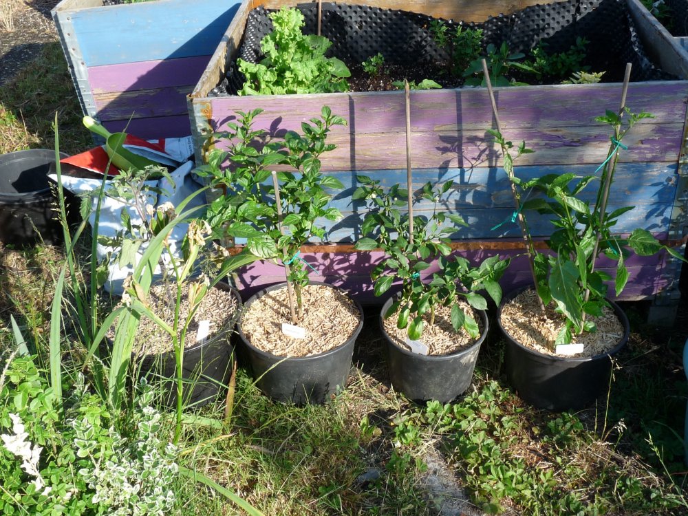 Da bleiben die Capsicum jetzt stehen. Direkt an den Holzhochbeeten.