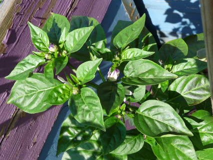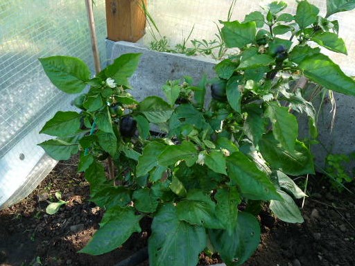 Die Purple Beauty Paprika (linke Bilder) im Tomatenhaus gibt Gas. Carmagnola steht in nichts nach.