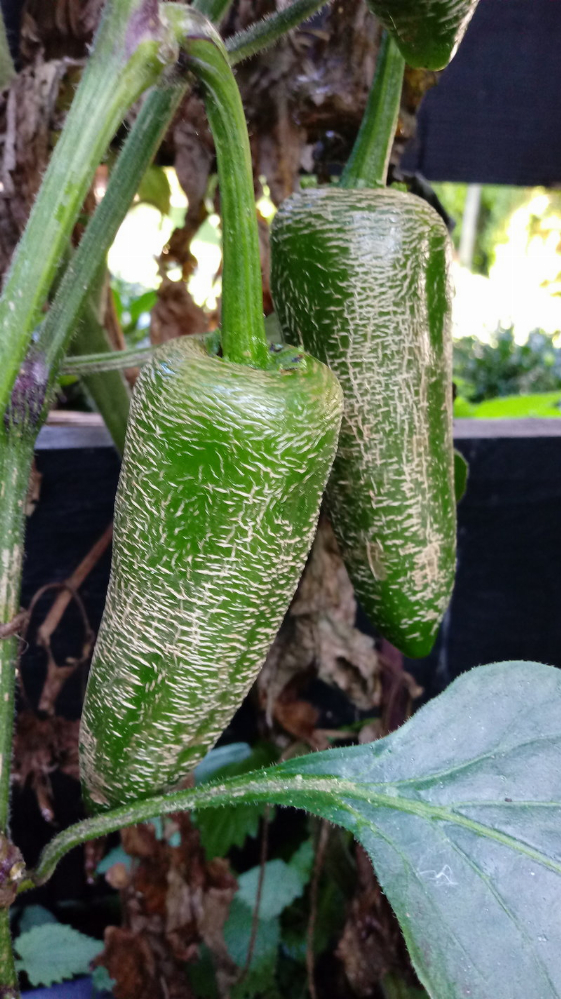 Heute habe ich festgestellet, dass die Rocoto sich verfärben. Ein Spiel mit der Zeit. Die Sukanya hängt brechend voll. Eine Beere war rot, aber angefressen.