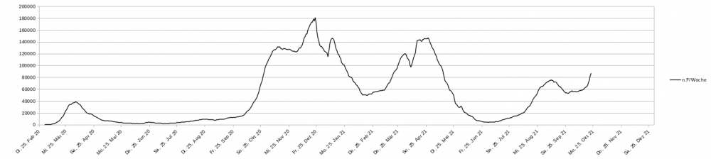 Die sog. "Vierte Welle" (ich nehme die täglichen "neuen Falle" der letzten 7 Tage als Referenz) scheint nicht abzuflauen oder sich gar zu einer "Fünften Welle" zu entwickeln. (Noch) NRW-Minister Laumann schließt inzwischen einen weiteren Lockdown nicht aus. 😐