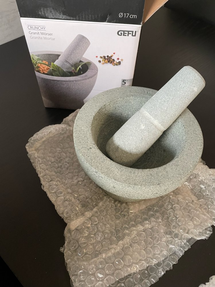 Ich habe zwar einen, aber benutzen tue ich den nur selten und dann für sehr kleine Mengen. Ich bin halt ein arg fauler Mensch und das, was Mark Wiens da veranstaltet - eine halbe Stunde mörsern - da habe ich nicht mehr die Ausdauer dafür. Da lobe ich mir doch meine diversen Blender und Mixer :)