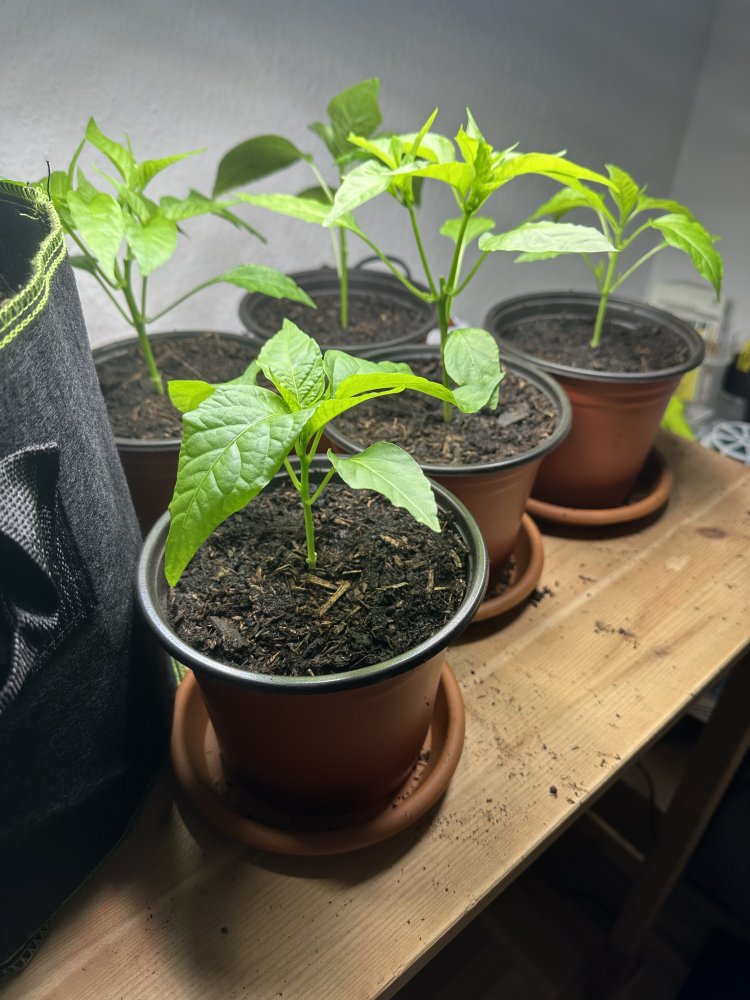 Habe die Pflanzen vor zwei Tagen umgetopft in etwas größere Töpfe mit frischer Tomaten und Gemüseerde. Das zeigt aber bisher leider keine besserung.