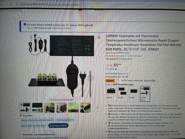 Ich verwende 2 Heizmatten für Reptilien, die ich bei ebay gekauft hatte,wenn man die nebeneinander legt, passen in Summe 10 Minigewächshäuser drauf, also 120 stellen für Anzuchtpads, Meine Matten haben keine Möglichkeit, Temperatur zu regeln, aber hier etwas für kleines Geld: